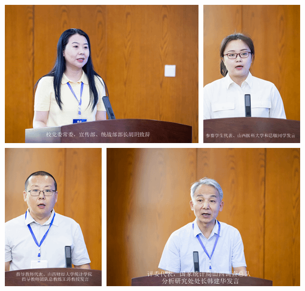 指导教师团队总教练王涛教授,评委代表、国家统计局山西调查总队分析研究处韩建华处长分别发言。