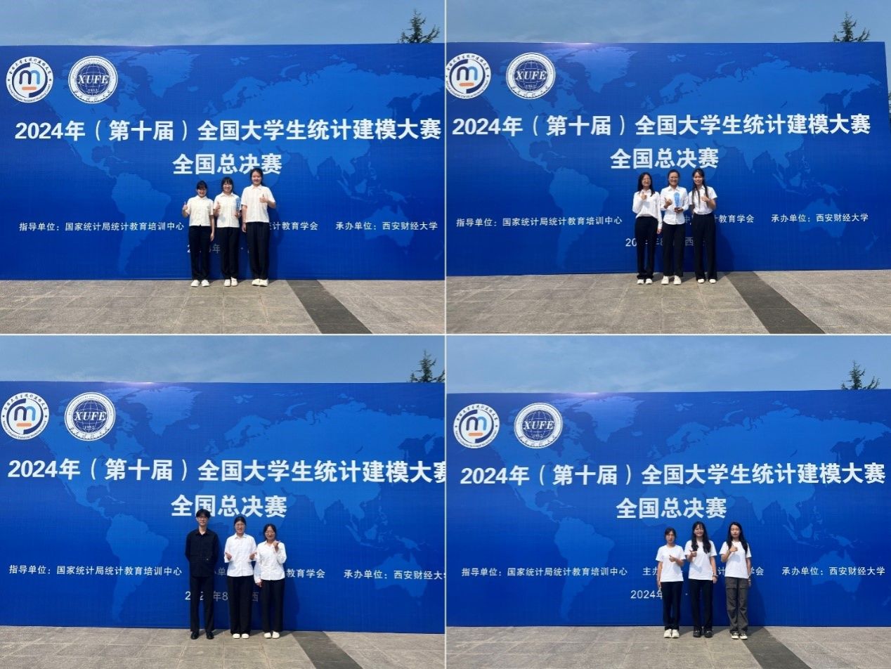 郝翠红老师指导的本科生李界雯、赵毓杰、黄韵轩报送的参赛作品《大数据驱动的CLIP模型在肺部CT图像分割与肺容积量化统计分析中的应用》;麻晶晶老师指导的本科生王佳茹、陈梦晶、雷宇芳报送的参赛作品《千里之湖,微变于藻--太湖叶绿素a浓度反演与AI预测模型研究》荣获本科生组全国一等奖。由赵丽琴老师指导的研究生王璇、陈柏蓉、张思航报送的参赛作品《基于老年人抑郁症状轨迹的失眠预警研究》荣获研究生组全国二等奖。由刘晓艳老师指导的本科生李钊慧、赫亚楠、谢天一报送的参赛作品《数字经济对现代化产业体系建设水平的影响研究》荣获本科生组全国二等奖。