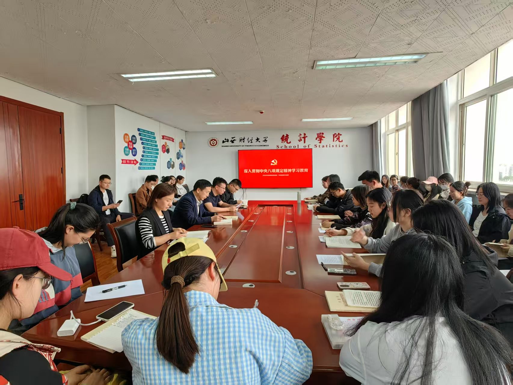 4月21日下午,学生党员读《习近平关于加强党的作风建设论述摘编》交流活动在修德楼12层学院会议室举行, 大家紧紧围绕《习近平关于加强党的作风建设论述摘编》,畅谈对全党开展的深入贯彻中央八项规定精神学习教育的认识,畅谈自己读书的心得体会。学院党委书记张锐、团委书记郜芬、学生党支部书记宋慧亮以及学生党员代表60余人参加,交流活动由学院党委副书记白利斌主持。