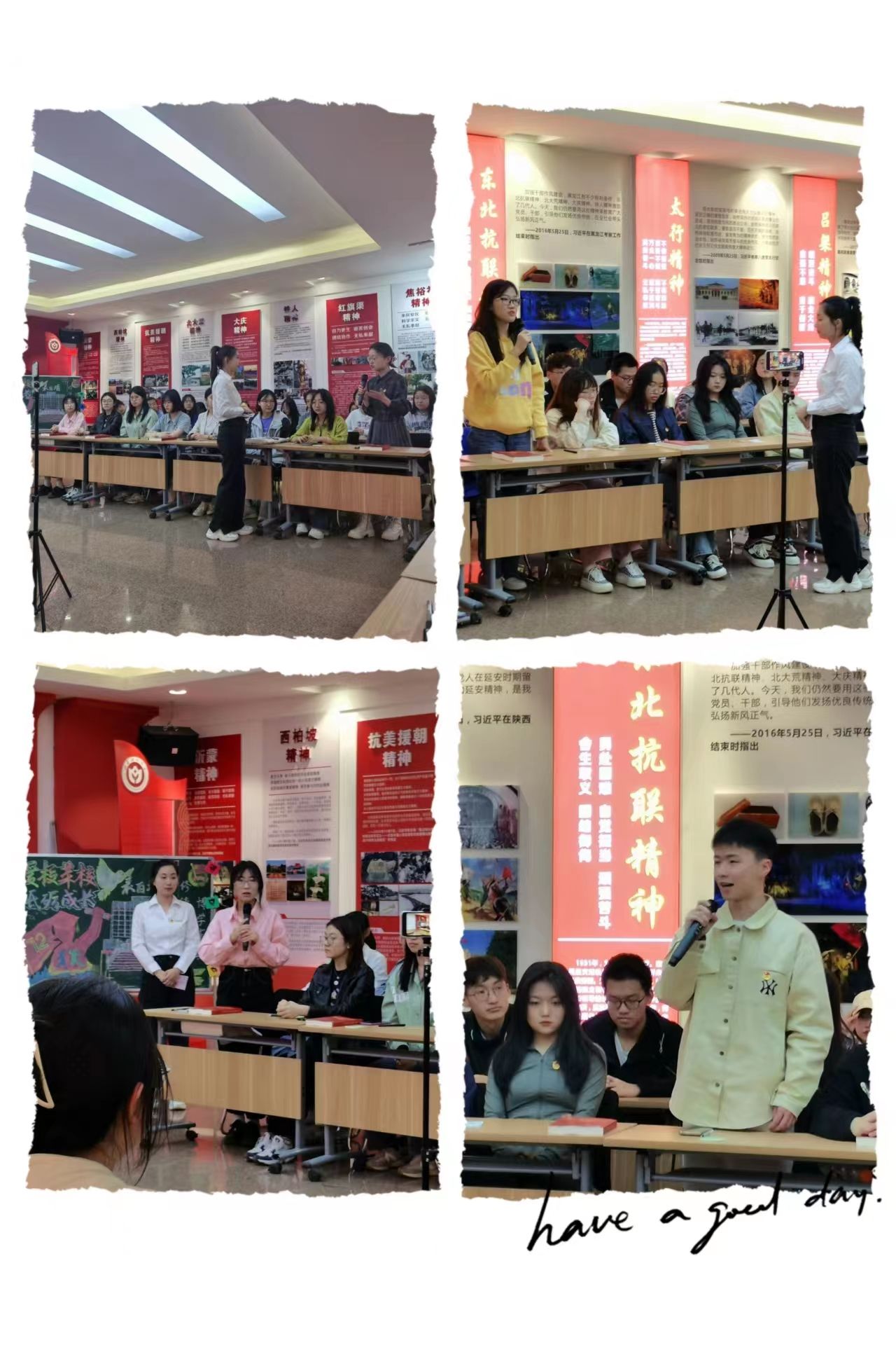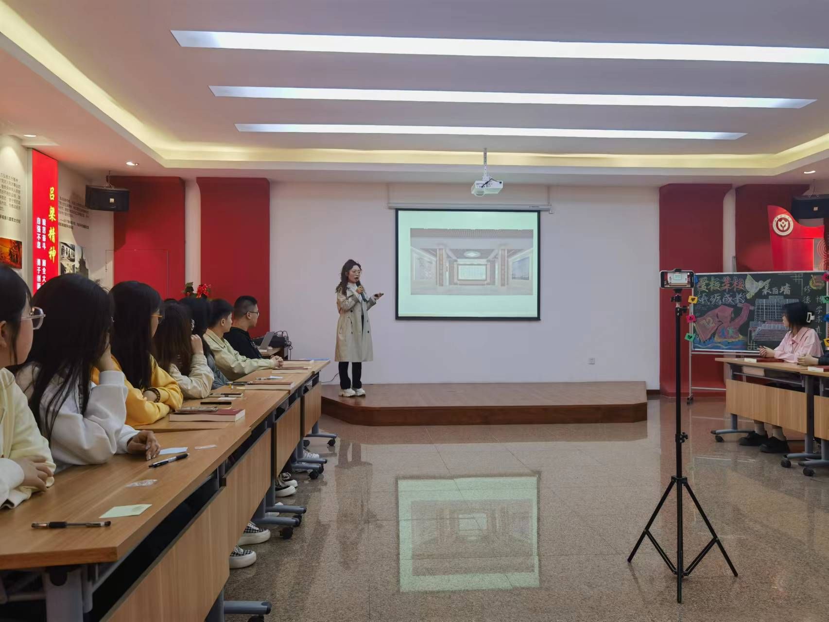 校史和一路向前、开拓进取的奋斗史,重现学校办学与发展历程。梁老师生动详实地讲述,饱含情感的话语深深感染了在场的每一位同学,“修德立信 博学求真”的校训深深地镌刻进同学们的脑海中,激发了同学们爱校荣校的情怀。