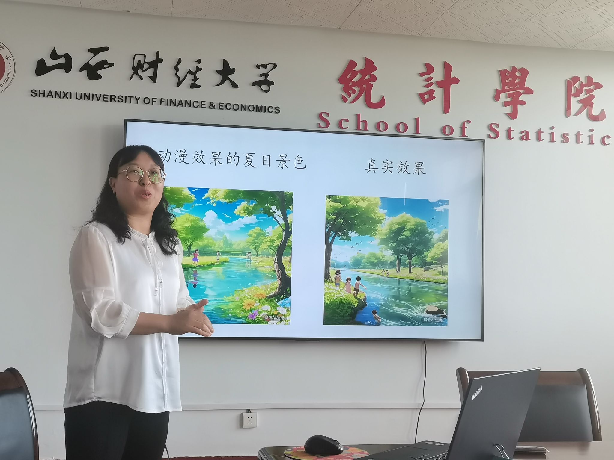 首先,张晓琴教授介绍了多个大语言模型平台,包括智谱清言、通义千问、文心一言、百川大模型、讯飞星火以及KimiChat,等,详细阐述了这些平台在教学设计中的应用。她指出,这些平台能够生成课程大纲、具体的教学设计、教学比赛的设计、考题、PPT以及绘图等,极大地丰富了教学资源和方法。其次,张晓琴教授通过实操向大家分享了一份为统计学专业本科生设计的《非参数统计》课程教学大纲及教学设计,以及如何生成参加教学竞赛的教学设计、如何生成一份BOPPPS教学演练。还介绍了如何具体的用相关插件生成一份完整的PPT,以及该PPT的导出和修改。此外,利用了大语言模型的生成能力,生成在教学中涉及的图形,以及以动漫效果和真实效果呈现夏日景色的图画,增加了讲解的趣味性和互动性。会议最后,张晓琴教授鼓励教师们积极尝试将这些先进的技术融入自己的教学实践中,以提高教学效率和学生的学习兴趣。